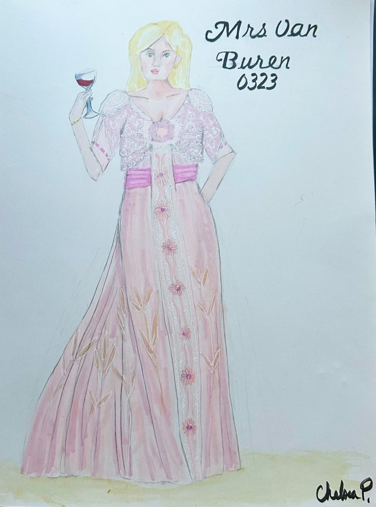 Moving to freehand was important to Chelsea moving forward. For her work on Intimate Apparel, she moved to free handing her sketches versus copying. She used multiple tutorials and books to develop her initial technique.