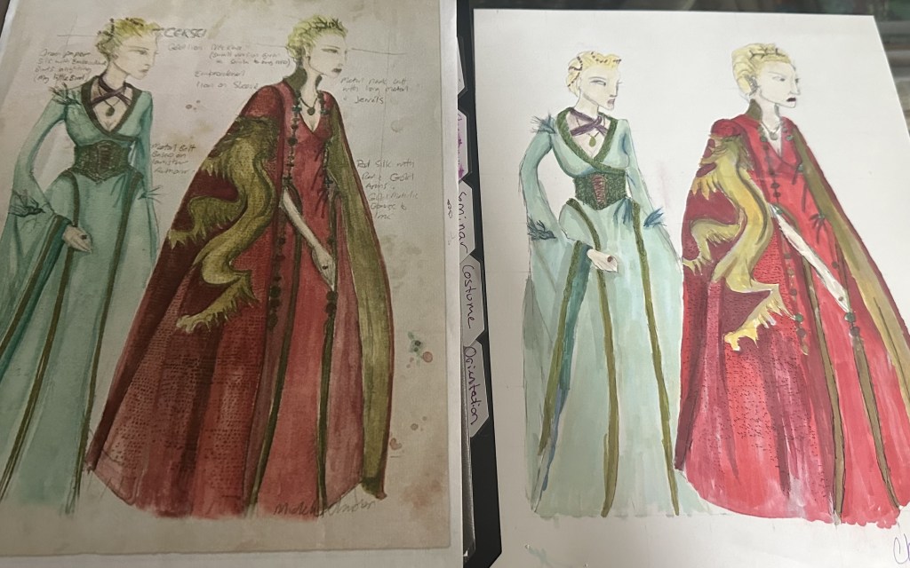 Chelsea came into theater with many years sewing experience, but zero with rendering! As part of her M.A., she took Costume 1 and completed several projects that allowed her to practice with new mediums. This is an ongoing journey for Chelsea, and one that she is very passionately pursuing in her personal time, not only due to her aspirations for costume design, but as she enjoys the power of being able to share the visions in her head for the first time as a maker.