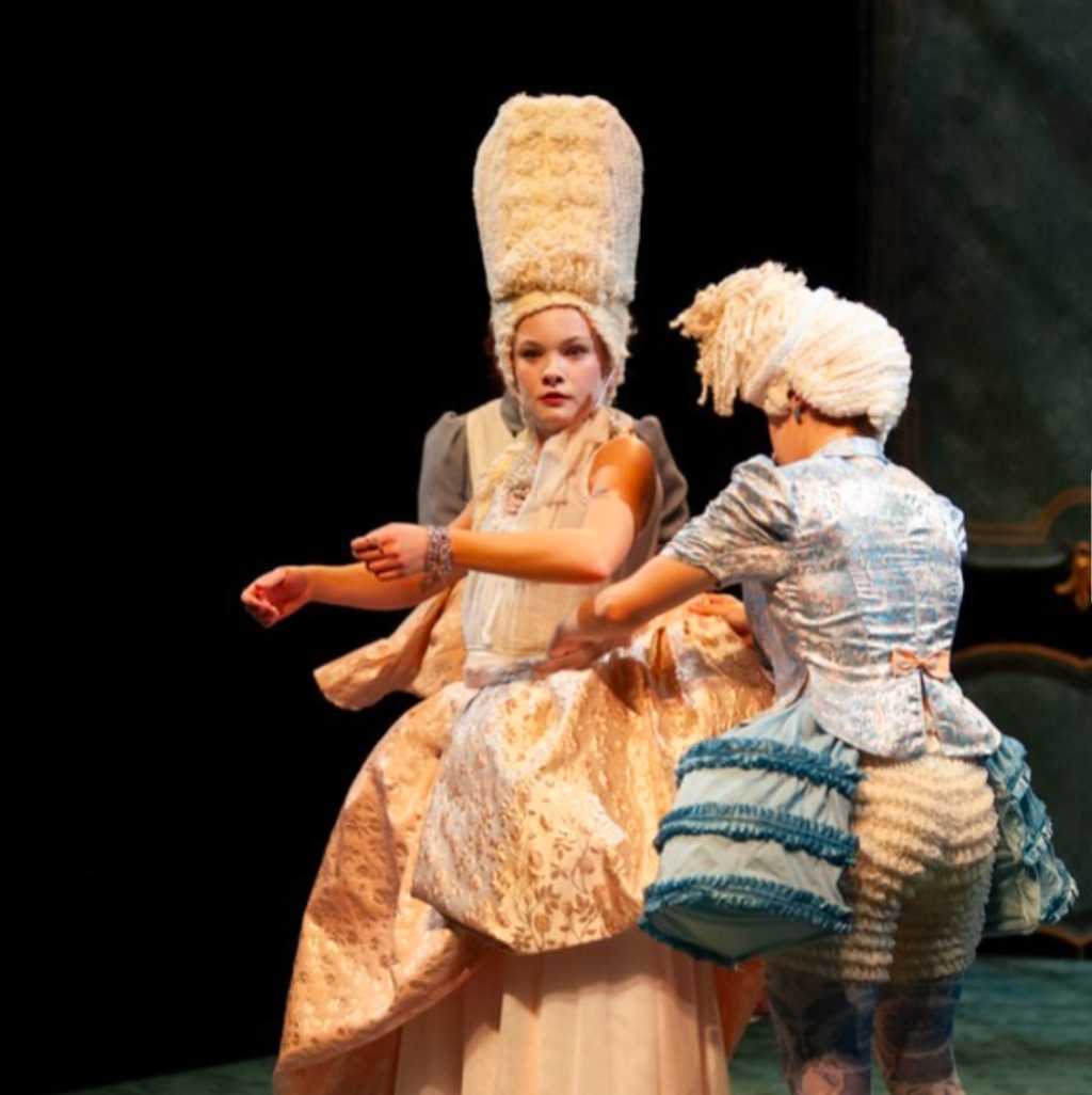 Chelsea was in charge of putting together a rehearsal ensemble for Marie that would replicate the function of the final garments for choreography and blocking purposes. Marie did not leave the stage, and she would be both dressed and undressed by her fellow performers, literally dismantling her gown piece-by-piece as the stress of the story increases.